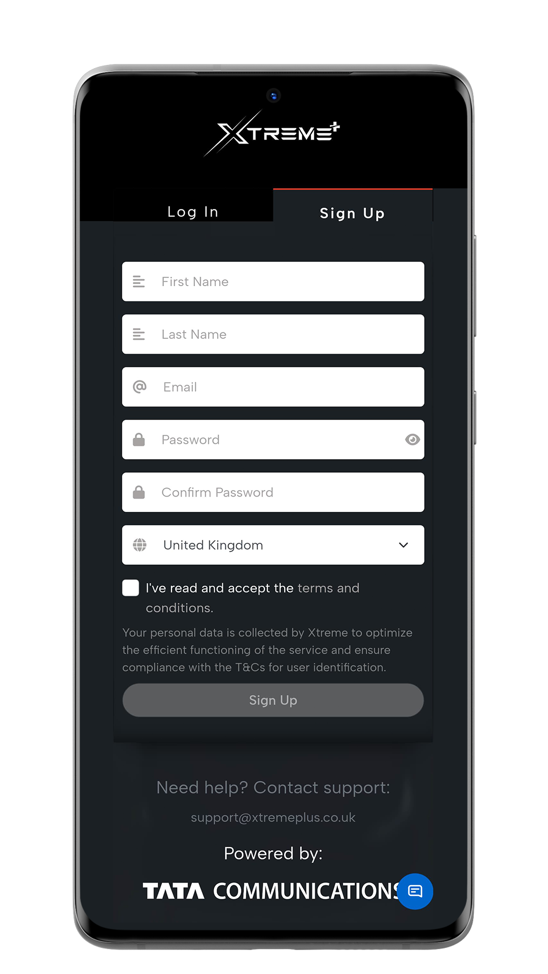 Choose your country, select "Mobile data only - Xtreme" as your mobile network provider and then just "Sign Up