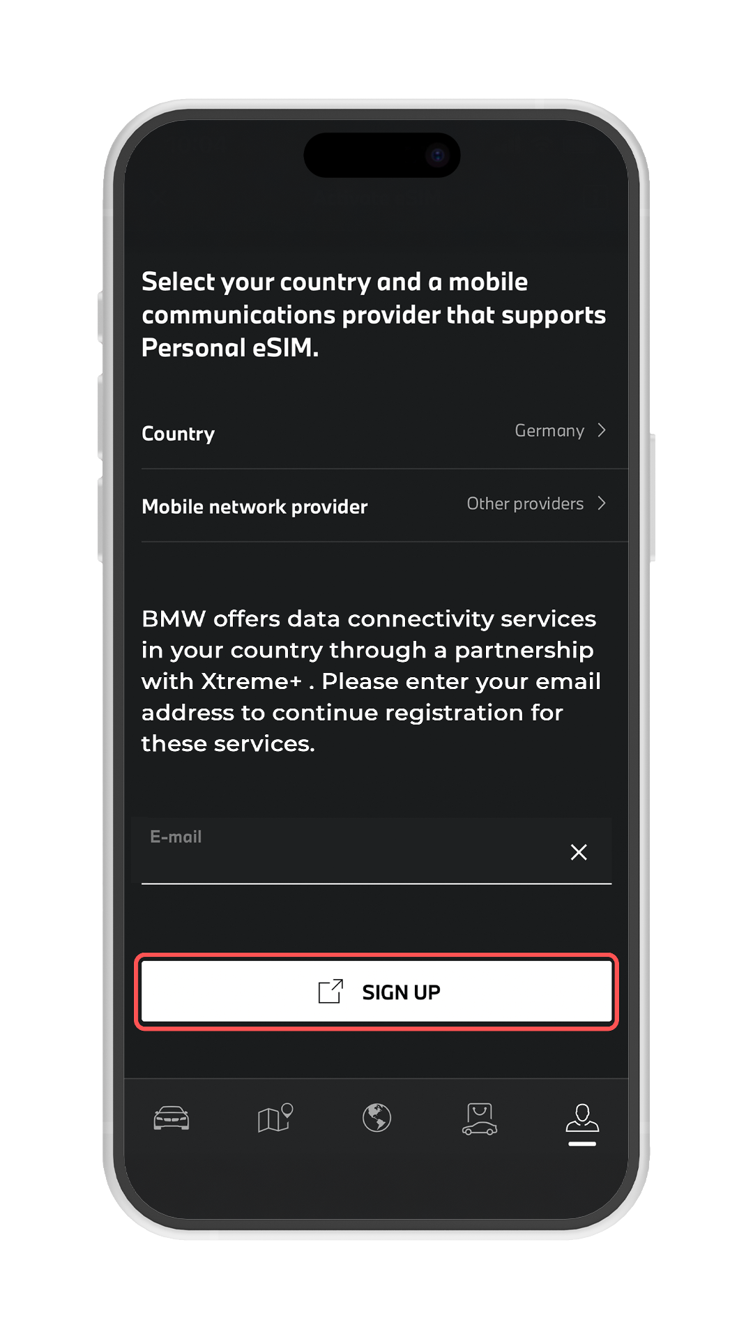 1. Select Xtreme+ as your mobile network provider in the My BMW App