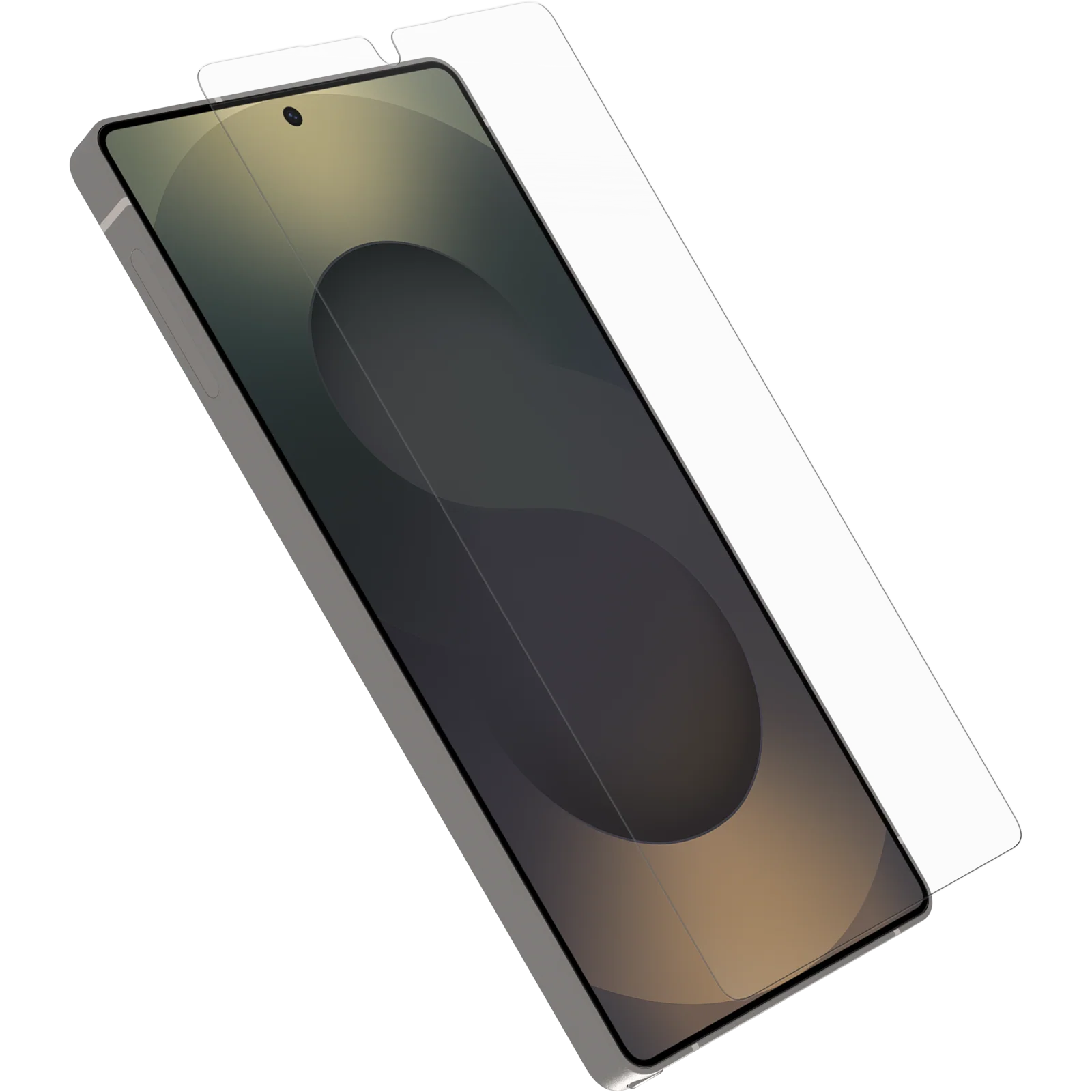 This premium tempered aluminosilicate glass protector offers advanced 9H surface hardness resistance against scratches and impacts. It meets Drop+ certification, surviving drops from up to 3 feet (0.9 meters). The protector is fingerprint resistant, maintains crystal-clear visual clarity, and provides flawless touch responsiveness. Made with over 60% recycled materials, it includes a quick and easy installation kit and comes with OtterBox's limited lifetime warranty with hassle-free replacements.