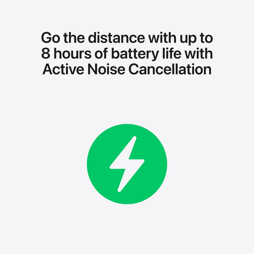 - Up to 8 hours of playback with ANC enabled, or 10 hours in Transparency mode.